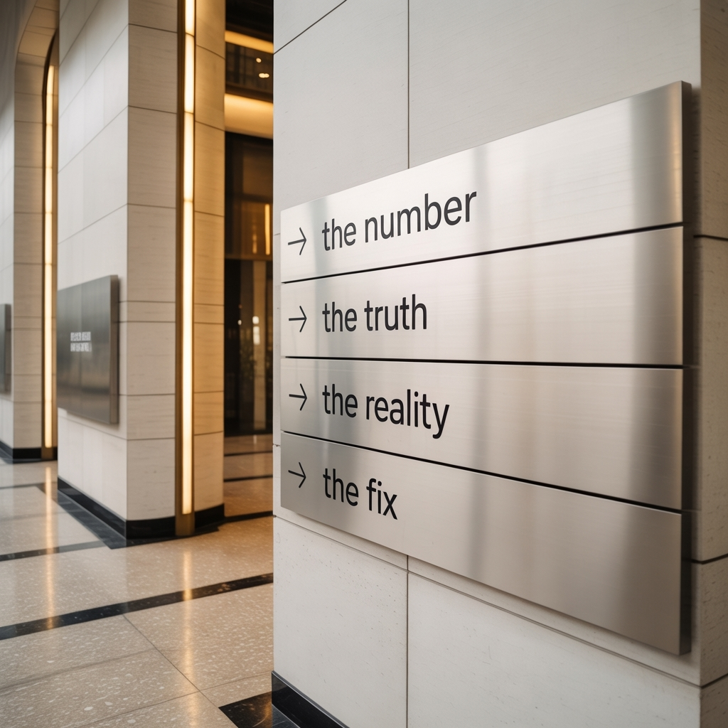We access your numbers and restructure your Profit and Loss correctly, with your true owner cost modelled in and every delivery cost above the line where it belongs. We calculate the 7 Numbers that reveal how your business actually works, then break down every service line: true time, true cost, true margin. This is usually the first time a business owner has seen their situation clearly. The Gap becomes undeniable.